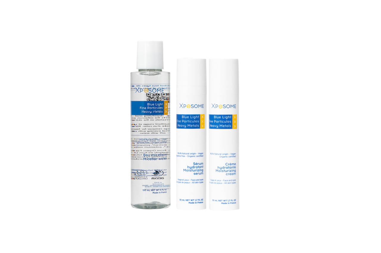 – Eau micellaire (150ml) : nettoie, démaquille en profondeur, dépollue et détoxifie la peau. Elle élimine les microparticules de pollution, absorbe la lumière bleue et libère la peau des composés oxydants.